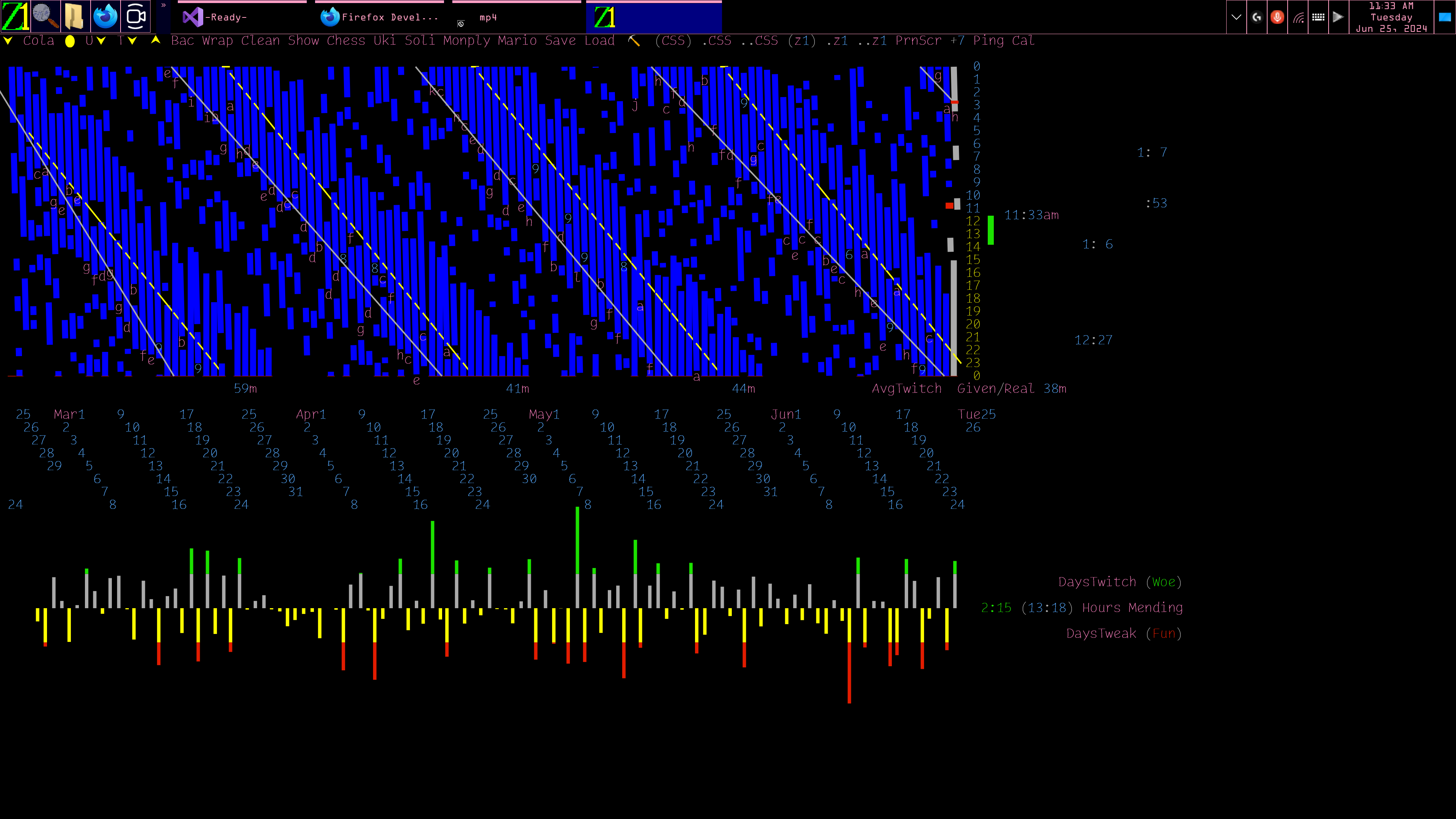 I'm Jeff-Relf.Me, in Seattle, Early 2024, born in Seattle, 1960. My Mouse/Keyboard Layout. <Sergey Vlasov's Visual Commander, Professional Edition> lets me assign up to 99 macros to keys/buttons[*]. [ *: Screenshot of my toolbars, Visual Studio Community 2019 <Snippets.TXT, My C# macros, to automate VS_2019> After making changes to my hand_crafted macros ( Snippets.TXT ), I copy it to the file that Visual Commander uses: %LOCALAPPDATA%\Sergey Vlasov\Visual Commander\1.0\Snippets.vCmd My "Open File" macros are in a "New Menu", on my toolbar. "File > Recent Files List" fills a similar "New Menu". ] Also, Visual Commander comes with -essential- ( to me ) extensions; one hides the "Sign in" button. See "Hide Menu bar and MainTitle bar" in: Snippets.TXT, My C# macros, to automate VS_2019. I love having all my macros & extensions in a single text file, like that. Visual Commander's macro editor uses the standard text/code editor, with <the fonts/sizes you normally use>[*]. [ *: For me, C# macros ( .CS files ) open as "PlainText"; see: "Open these file types in the PlainText editor" in Win10.REG(.TXT). <ScreenShot of my source code.>. <My "console" (z1.HTM)> colorizes the '0' glyph, <Screenshot>. ] For me, F7 starts/stops recording, F8 plays it. The macro recorder has -many- faults; but macro editing/assignment matters more than keystroke recording. For example, This toggles "Line Wrapping" On/Off: EnvDTE.Properties jEd = DTE.get_Properties( "TextEditor", "C/C++" ); EnvDTE.Property WordWrap = jEd.Item("WordWrap"); WordWrap.Value = !(bool)WordWrap.Value ; jEd.Item("VirtualSpace").Value = true ; For "PlainText", instead of "C/C++", use: EnvDTE.Properties jEd = DTE.get_Properties( "TextEditor", "PlainText" ); EnvDTE.Property WordWrap = jEd.Item("WordWrap"); WordWrap.Value = !(bool)WordWrap.Value ; jEd.Item("VirtualSpace").Value = true ; // System.Threading.Thread.Sleep(2000); try { DTE.ExecuteCommand("Edit.StopOutlining"); } catch { } FYI, This toggles "ShowHorizontalScrollBar" On/Off: EnvDTE.Property hScroll = DTE.get_Properties( "TextEditor", "PlainText" ) .Item("ShowHorizontalScrollBar"); hScroll.Value = !(bool)hScroll.Value ; EnvDTE80 bugs: "DTE.Find.Execute()" changes your find_history/find_settings. Solultion: use "DTE.Find.FindReplace()" instead. Put "Not Found" messages in the <StatusBar>: DTE.StatusBar.Text = @" Not a ■⏎⏎■⏎ file." ; < DTE.ItemOperations.OpenFile("C:/__/z1.HTM"); > no longer works properly because the edit_tab never gets updated when it's changed by something outside the editor. Solultion, use this instead: < DTE.ExecuteCommand("File.OpenFile", "C:/__/z1.HTM"); > This (below) no longer works because, after a "File.SaveAll", your edit window doesn't show ExternalCommand1's changes: DTE.ExecuteCommand("File.SaveAll"); DTE.ExecuteCommand("Tools.ExternalCommand1"); Use this instead: DTE.ExecuteCommand("File.SaveAll"); System.Threading.Thread.Sleep(2000); DTE.ExecuteCommand("Tools.ExternalCommand1"); Or just: DTE.ExecuteCommand("Tools.ExternalCommand1"); ■